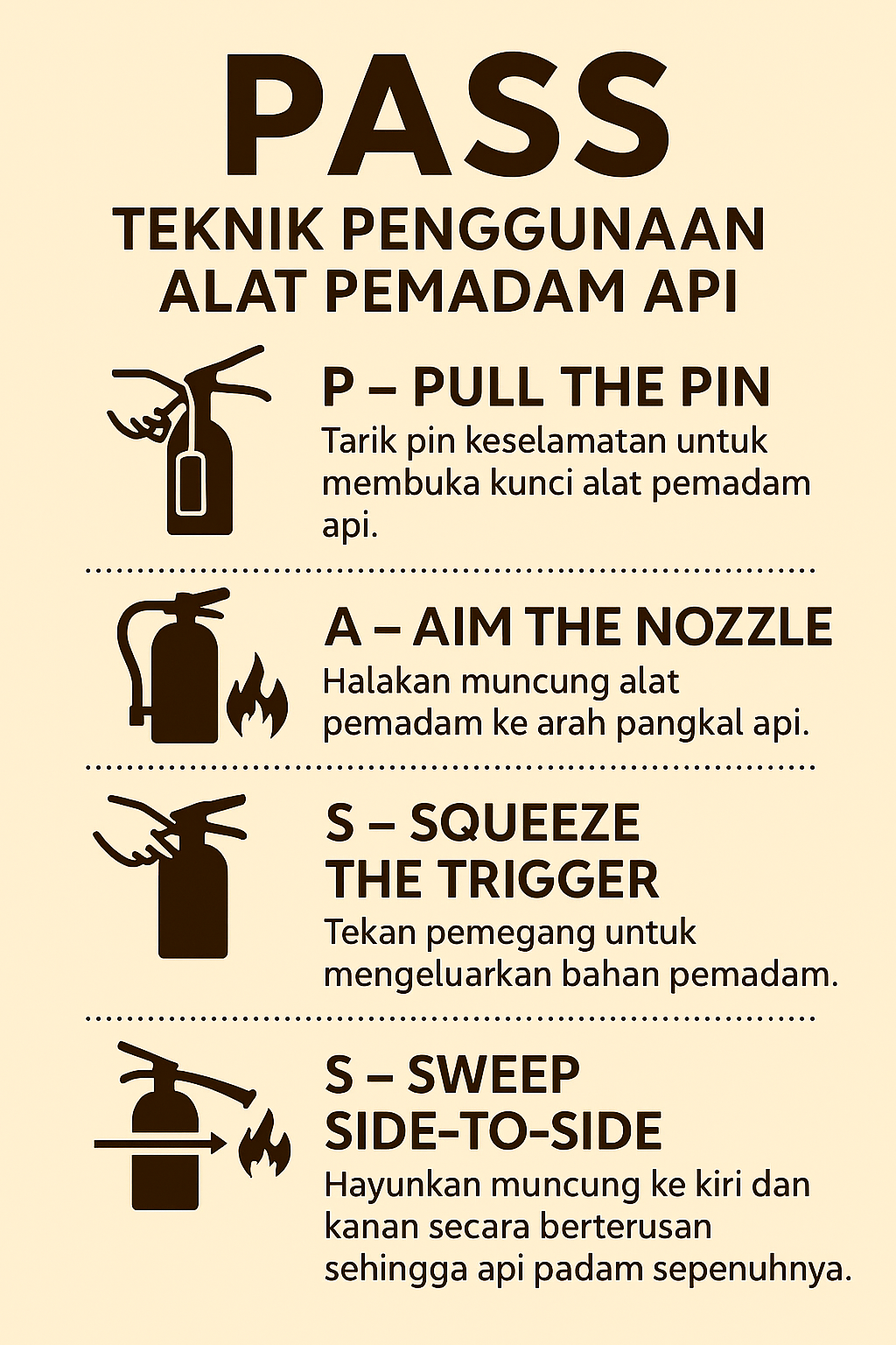 • Latihan praktikal teknik PASS dalam penggunaan alat pemadam api